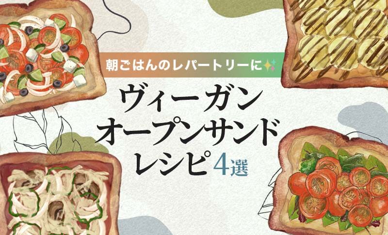 動物性食品を使用しなくても作りやすいサンドイッチは、ヴィーガンの方にとても人気です。中でも、具材を挟まずにパンの上に載せるだけで完成する「オープンサンド」は手軽に作れて、お洒落な見た目でなので朝食にぴったり!