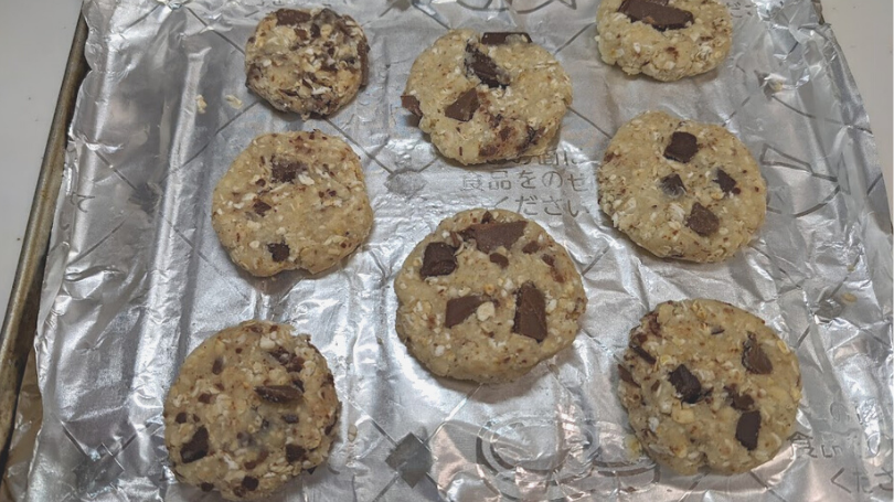 オートミールや材料をポリ袋に入れて生地を仕上げるので、ボウルなどの洗い物が少なく簡単に作ることが出来ます。アーモンドプードルと米粉を入れるとよりザクザクに仕上がります。板チョコ以外にもお好みでナッツ類、レーズン、ごまなどを入れてアレンジするのもおすすめです。豆乳で試してもさらにさっぱりとした味わいになります。
