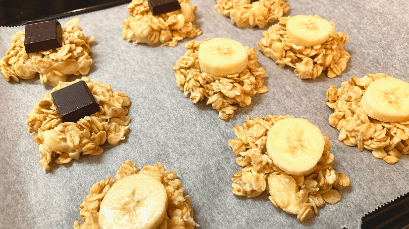 オートミールの栄養で有名なのは、食物繊維の豊富さ。日頃食べている白米の約19倍もの食物繊維が含まれていますよ。糖質は白米より少ないためダイエット向きです。完熟バナナの甘味と、ビターチョコの苦味がクセになる一品。仕事合間の息抜きにもってこいです♪