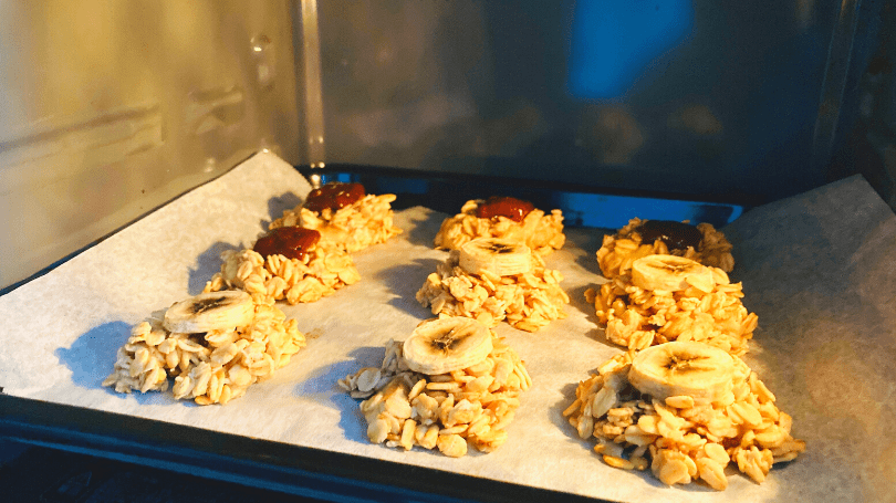 天板にクッキングシートを引き、スプーンを使って丸く形成しながら乗せる。- 5