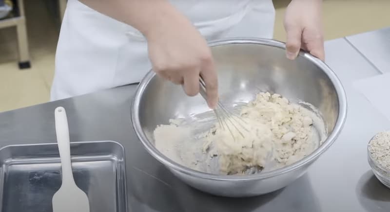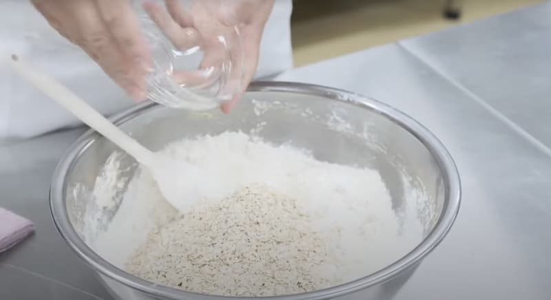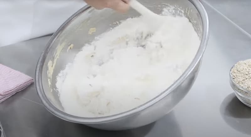 オートミールを加えて、粉っ気がなくなるまでまぜる。