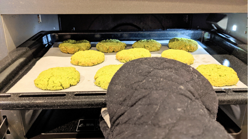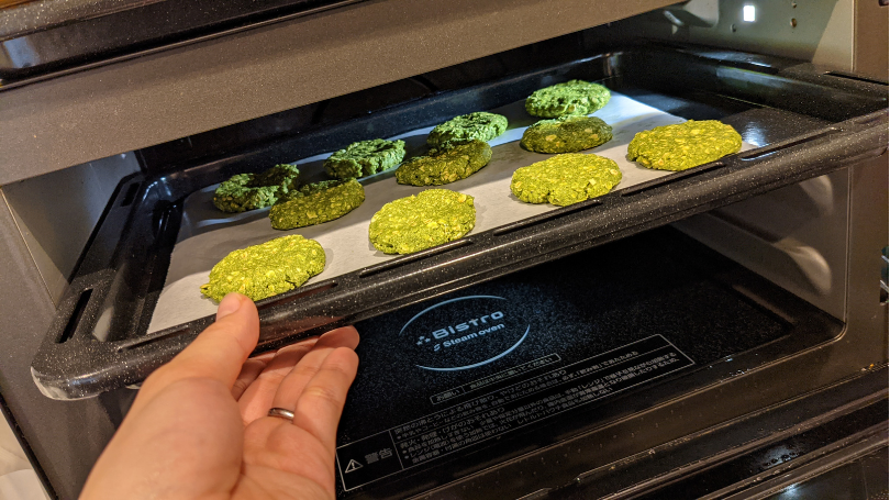 予熱しておいたオーブンで180度で10分焼き、粗熱を取って出来上がりです。
